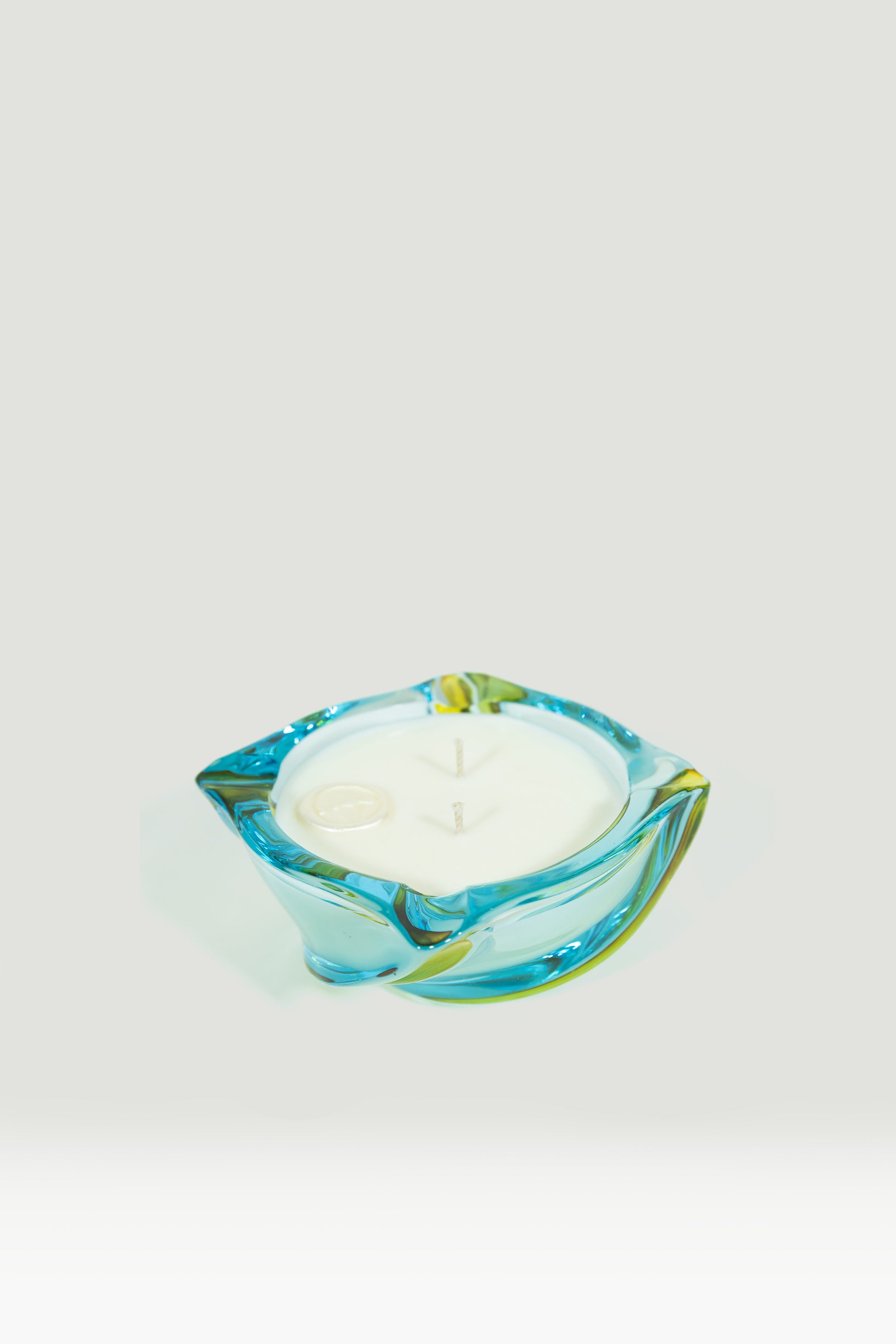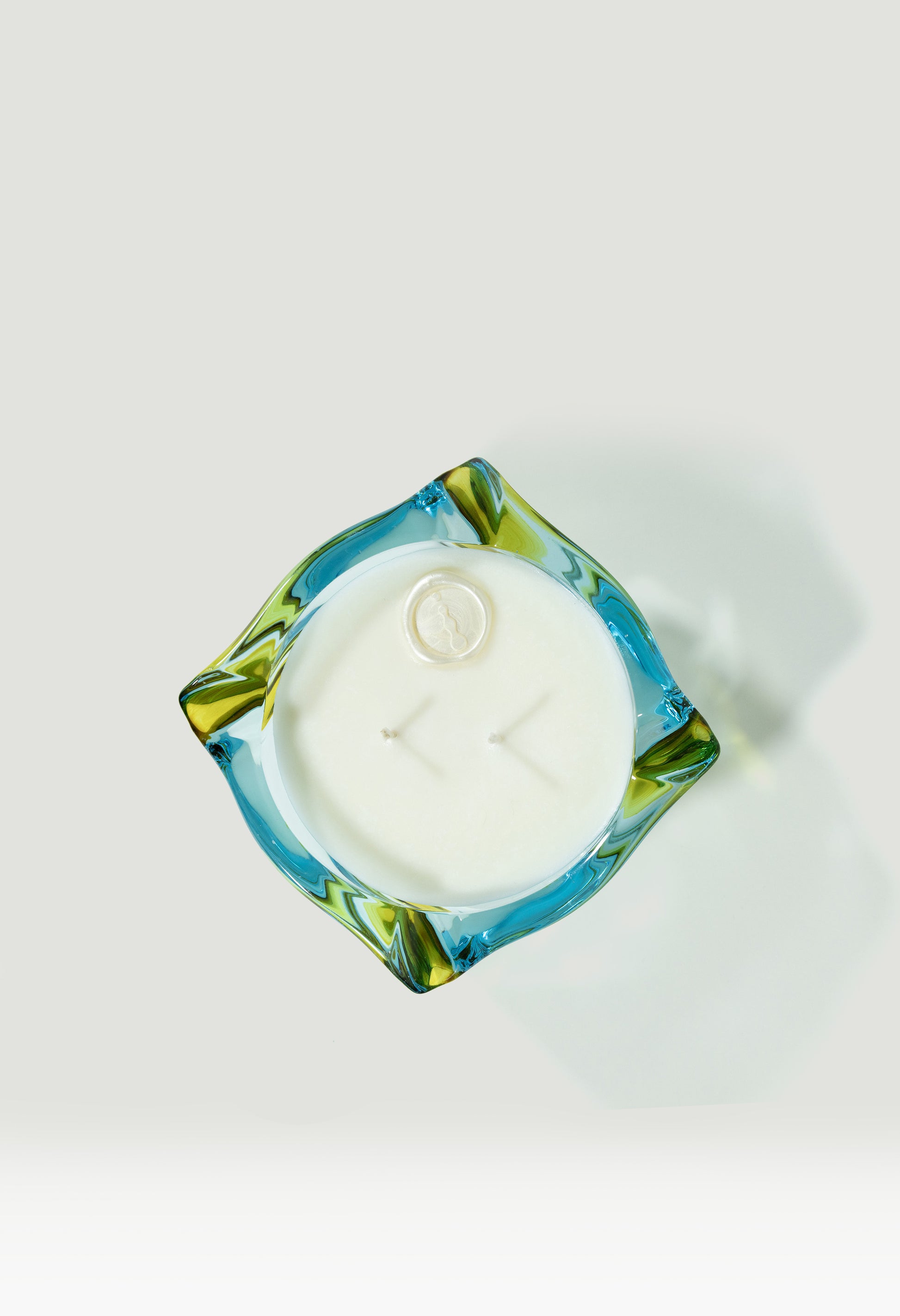 Twisted Blue and Yellow Glass Container
